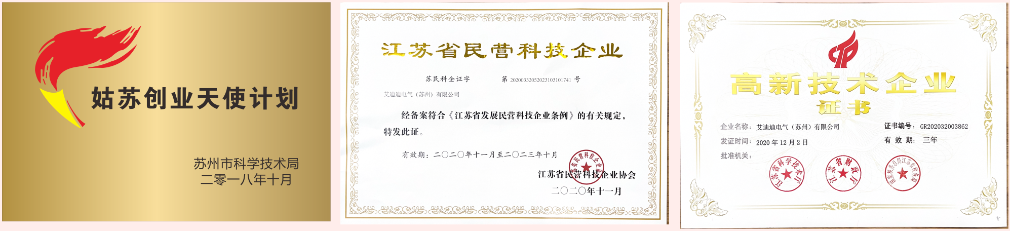 В процессе развития компания Adidi Electric также получила множество наград. В 2019 году проект компании присоединился к «Бизнес-ангельскому плану Гусу» и был удостоен звания частного технологического предприятия провинции Цзянсу.; в 2020 году она успешно получила статус «Национального высокотехнологического предприятия». Эти достижения свидетельствуют о выдающихся результатах компании в таких областях, как технологические инновации и развитие предприятий.